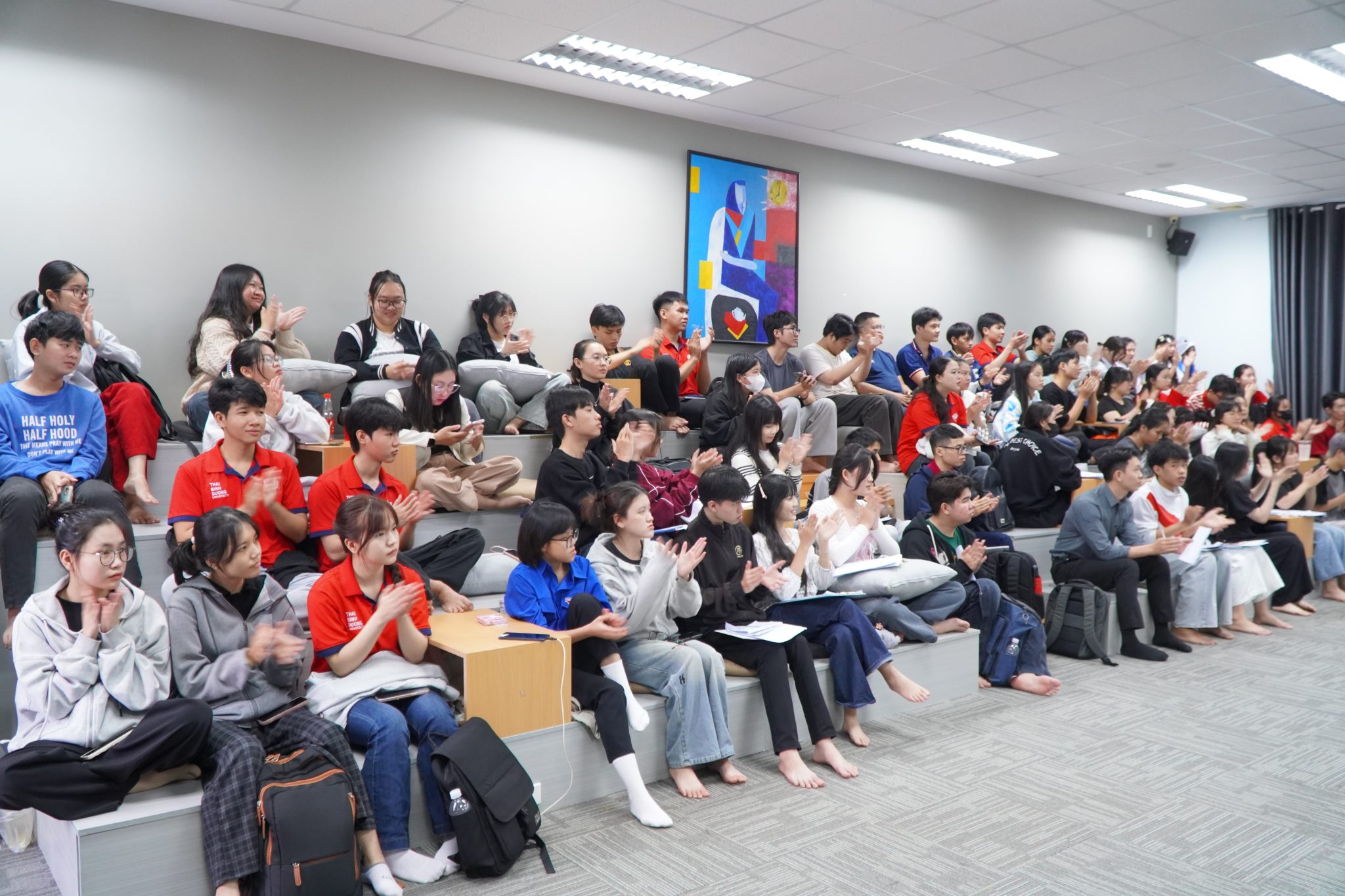 Không khí trao đổi hai chiều giữa giảng viên và sinh viên diễn ra sôi nổi, cởi mở và mang tính xây dựng. Những câu hỏi, tình huống và chia sẻ thực tế đã giúp kết nối lý thuyết với thực tiễn, đồng thời tạo điều kiện để người tham dự cùng nhau nhìn nhận vai trò của tiếng Việt như một nền tảng quan trọng trong việc hình thành tư duy học thuật và bản lĩnh hội nhập.